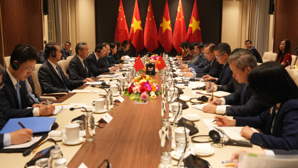 王毅表示,一年之计在于春,中方在中国全国两会结束后第一时间访越,体现了中越关系的高水平。今年1月越共十四大召开后,席大大总书记、国家主席同苏林总书记及时通话,一致同意要开好中越外交、国防、公安“3+3”战略对话机制首次部长级会议和双边合作指导委员会第十七次会议。遵照两党最高领导人战略共识,我们应通过这两个重要机制会议,深入探讨统筹发展与安全两件大事,明确走好社会主义道路的重要举措,向国际社会发出中越团结互信、携手前行的积极信号。